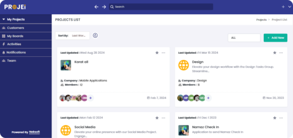 Projei is a fully integrated system for project management that makes work management, teamwork, and productivity easier for both individuals and teams. Workflows can be easily organized and streamlined using its capabilities, which include task tracking, project deadlines, file sharing, and team communication tools. Because Projei interfaces with well-known programs like Google Drive and Slack, cross-platform cooperation is guaranteed. Projei offers real-time updates, statistics, and customizable dashboards to help teams efficiently manage their projects and achieve deadlines. It is appropriate for all sizes of organizations due to its user-friendly interface