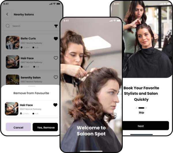 Salon Spotis an app that enables users to easily book venues and services like gyms and sports facilities, providing access to schedules and prices. It features integrated payment options for managing bookings and tracking scheduled, completed, and canceled reservations.